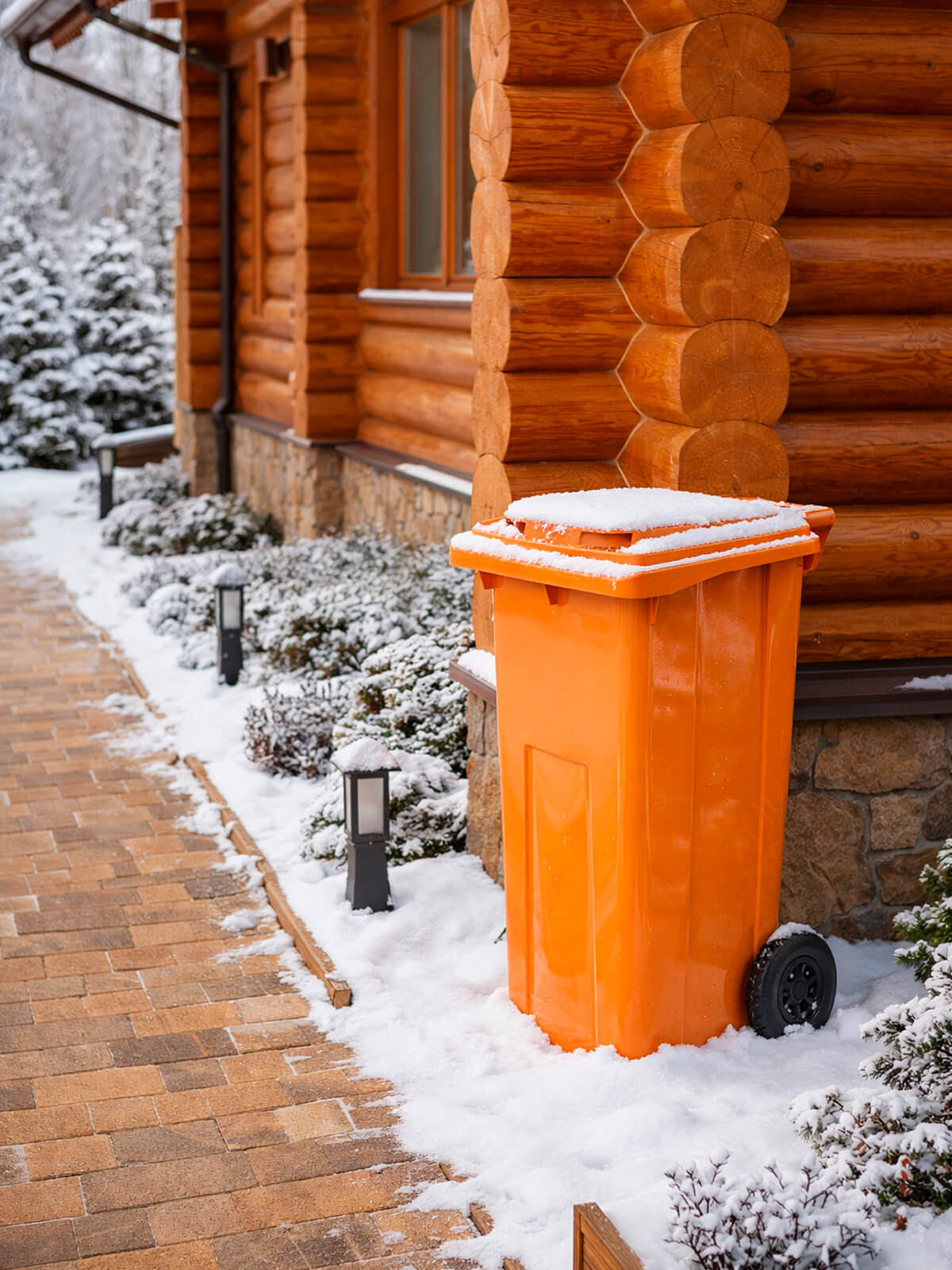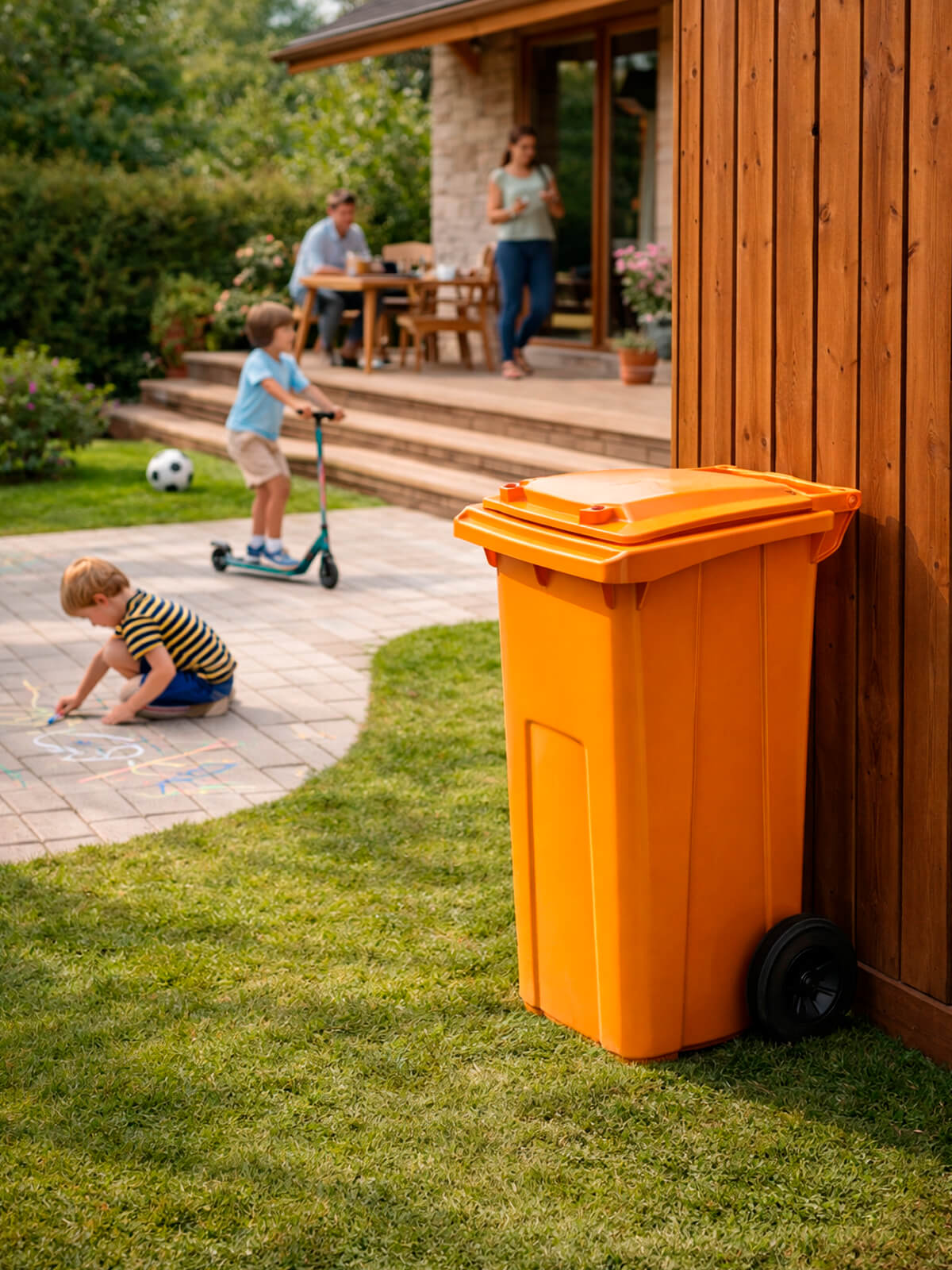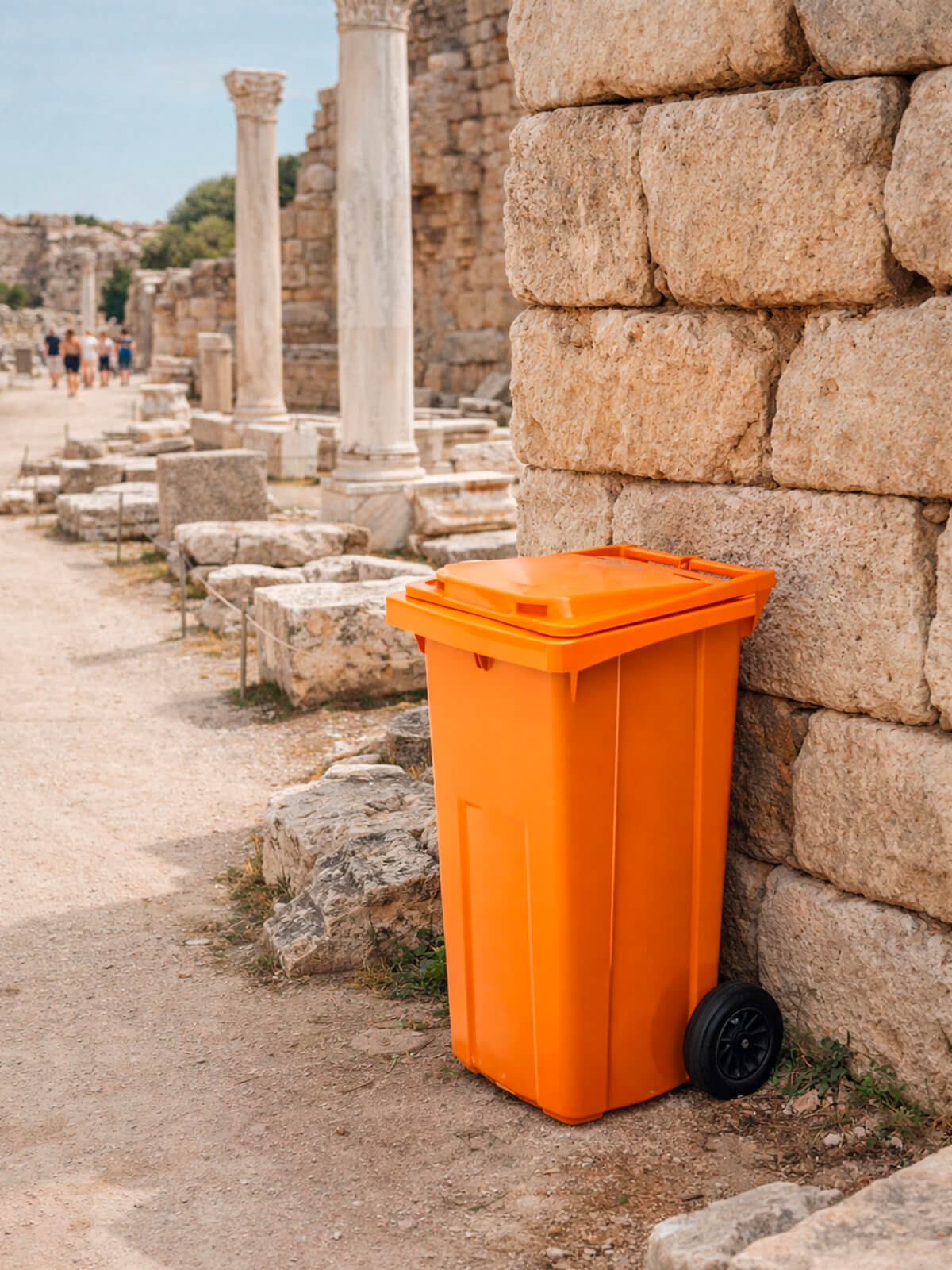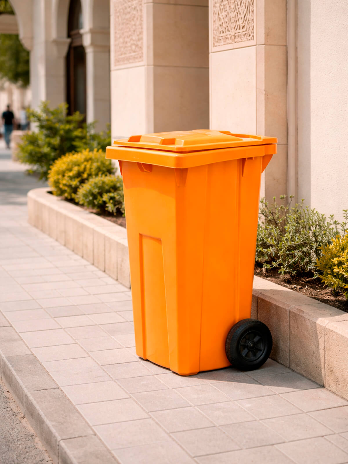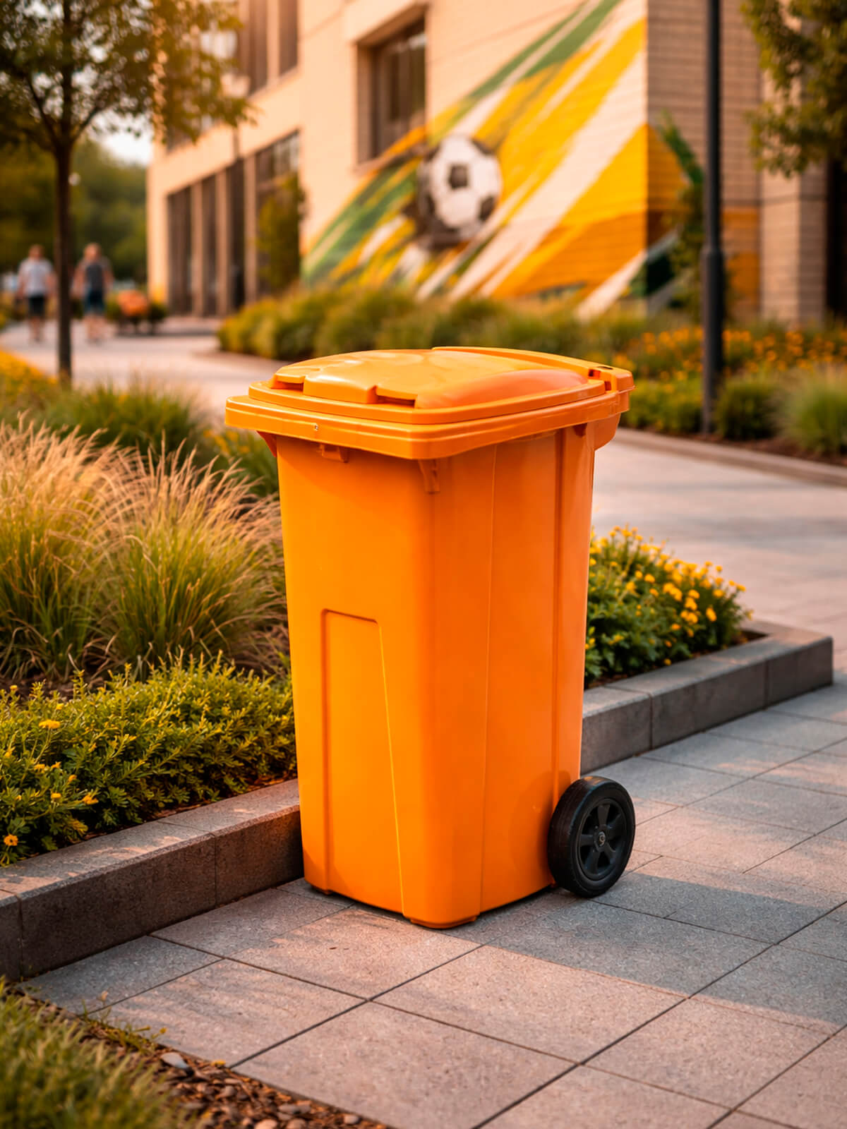 Контейнер для мусора 120 л на колёсах с крышкой, оранжевый — повышенная видимость и системный контроль отходов