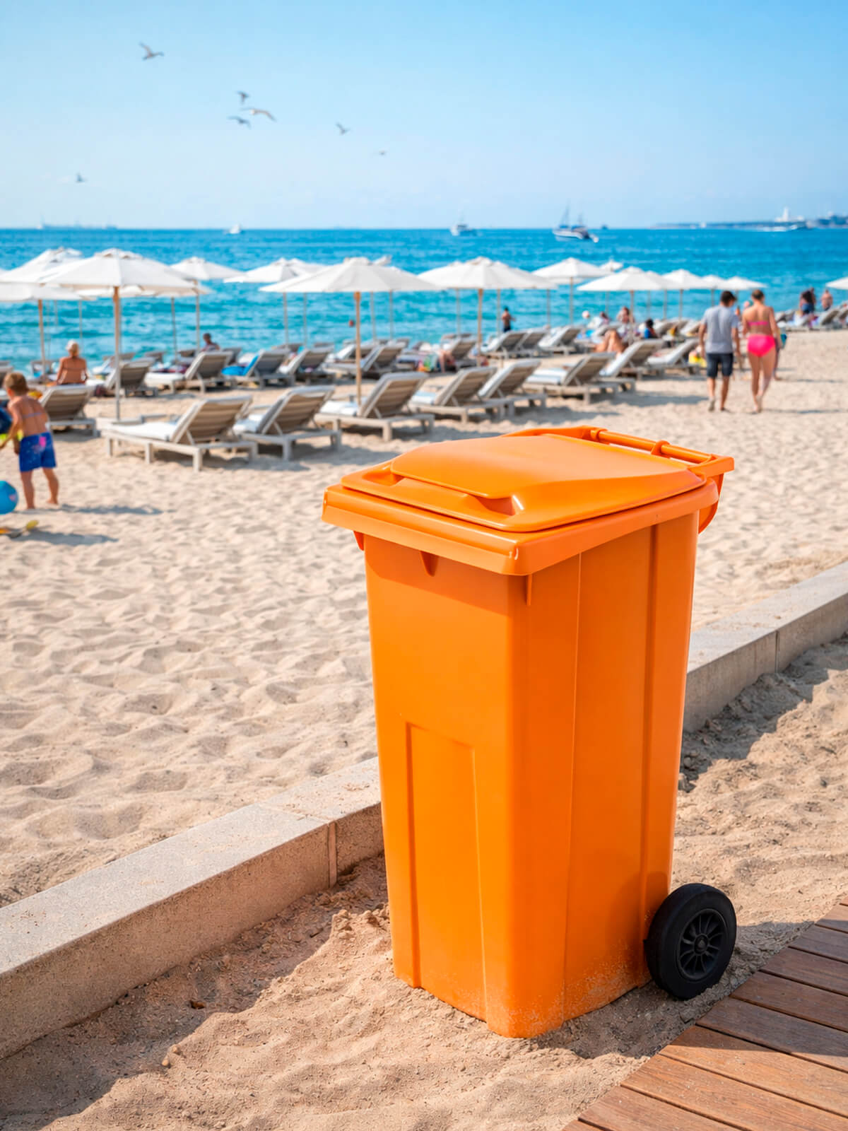 Оранжевый бак для мусора поддерживает порядок, повышает дисциплину и помогает внедрить систему сортировки отходов. Он идеально подходит для территорий, где важно визуальное разделение мусорных зон, безопасность и контроль.