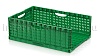 Складные ящики разработаны и спроектированы для хранения и перемещения плодо-овощных культур как внутри производства, так и между торговыми точками и складами. Благодаря функции складывания значительно экономят место при использовании в качестве возвратной тары. Перфорированные стенки обеспечивают сохранение свежести и сочность продуктов перфорации абсолютно на всех стадиях логистики. Штабелируются на паллетах 1200х1000 и 1200х800.