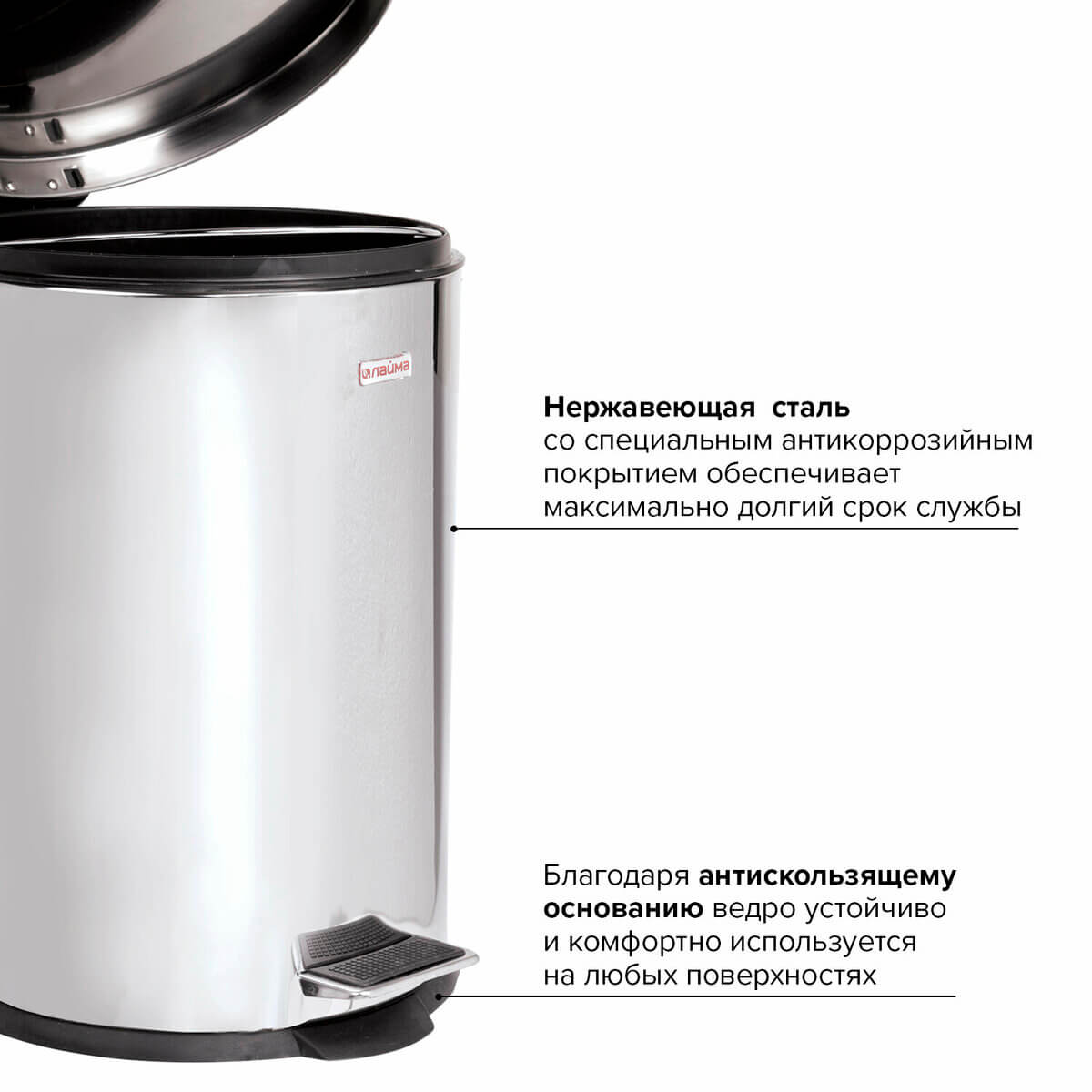 Ведро-контейнер для мусора (урна) с педалью LAIMA Classic, 5 л, зеркальное, нержавеющая сталь, со съемным внутренним ведром
