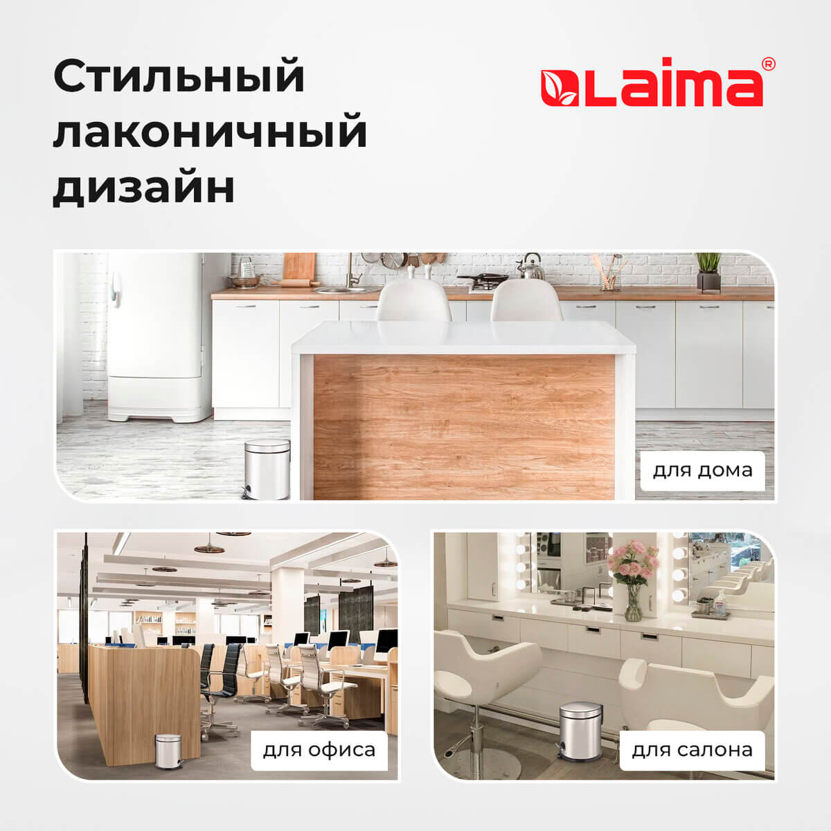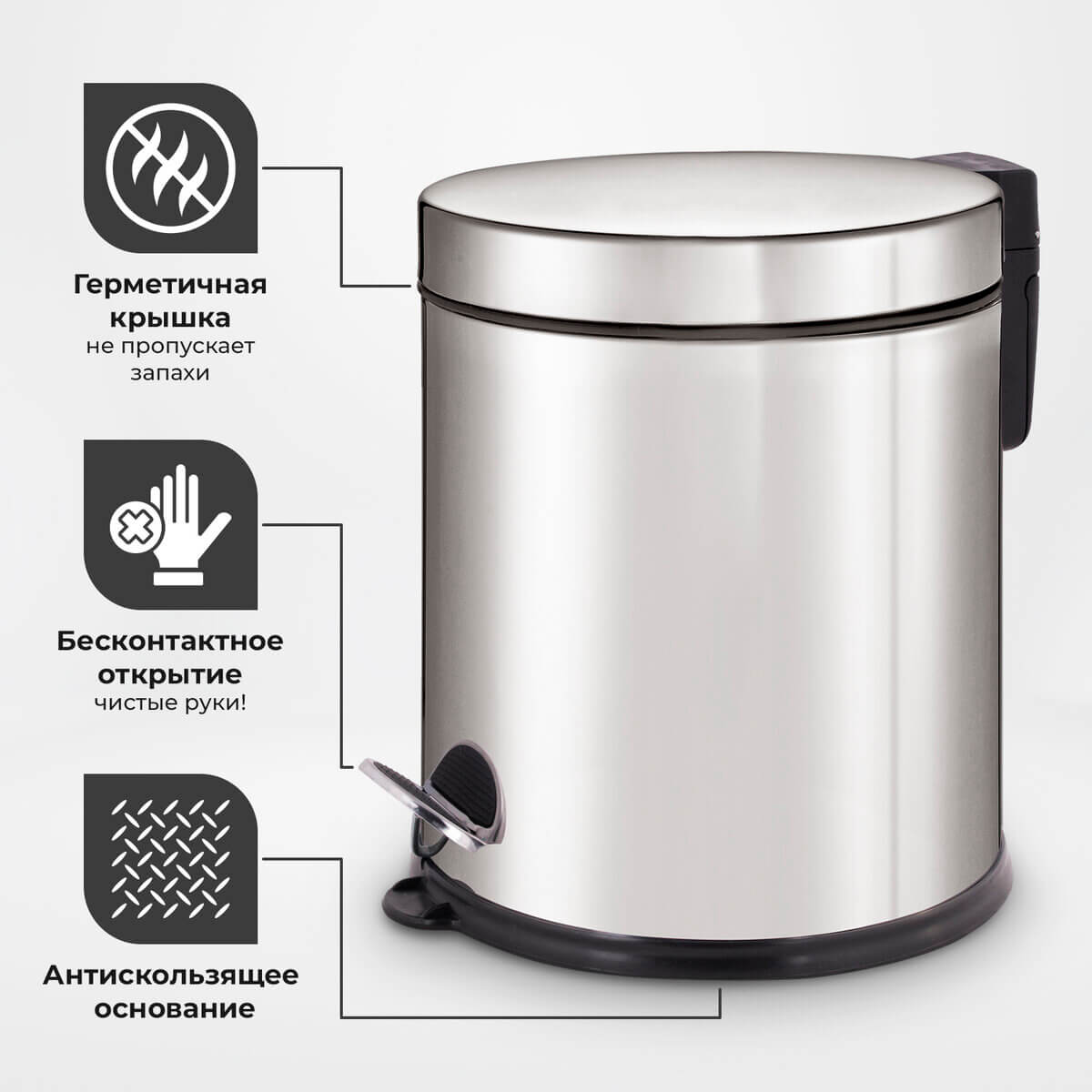 Ведро-контейнер для мусора урна с педалью LAIMA Classic Plus, 5 л, зеркальное в Кузнецке